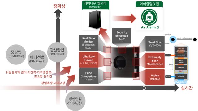 기존 대기질 측정 방식의 한계를 극복하고, 초 단위 실시간 측정을 가능하게 한 공감센서의 **’광산란법 초미세먼지 측정기’**와 그 실전 도입 성과가 상세히 소개되었습니다.