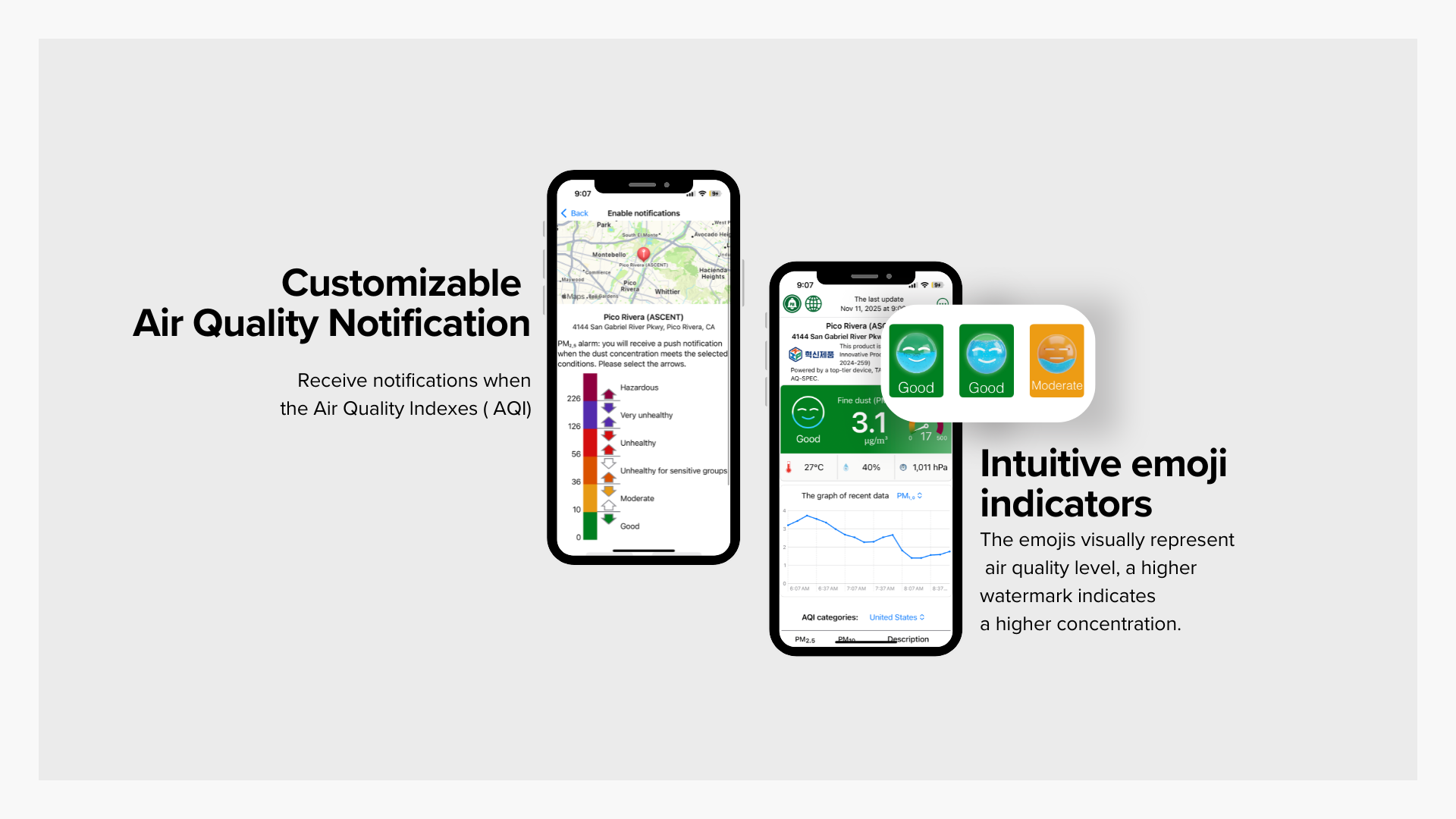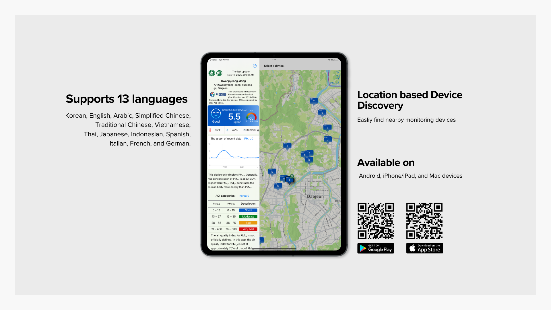우리는 미세먼지를 측정하고 정확하고 신속한 정보를 제공하여 시민의 건강을 지키고 기후 변화에 대응함으로써, 공기와 기후 정의를 실천하고 있습니다.