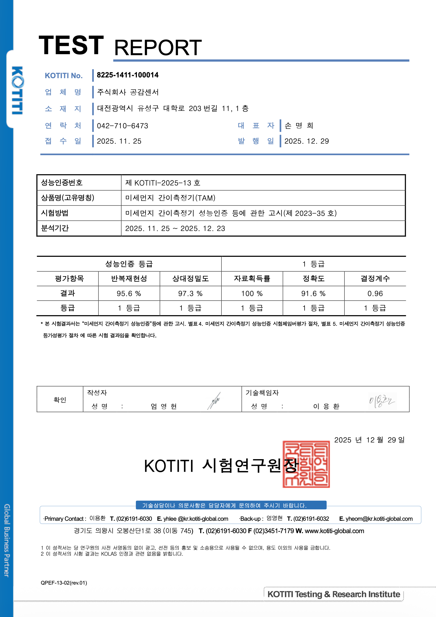 TAM has secured high competitiveness in durability and accuracy by demonstrating the atmospheric environment of four monitoring stations in Korea.